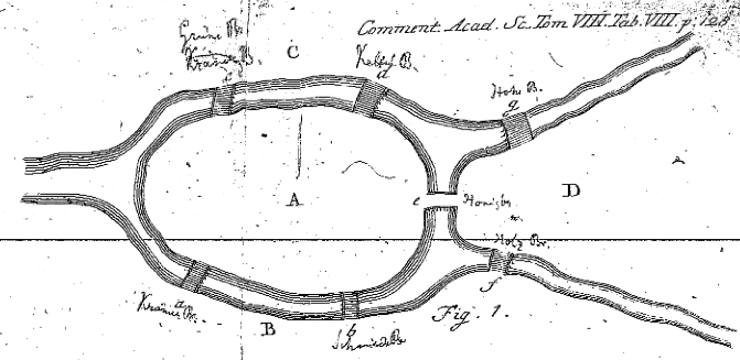 . Trong đoạn này, ông nêu câu hỏi: Liệu một người có thể tìm ra cách đi qua mỗi cây cầu đúng một lần hay không?