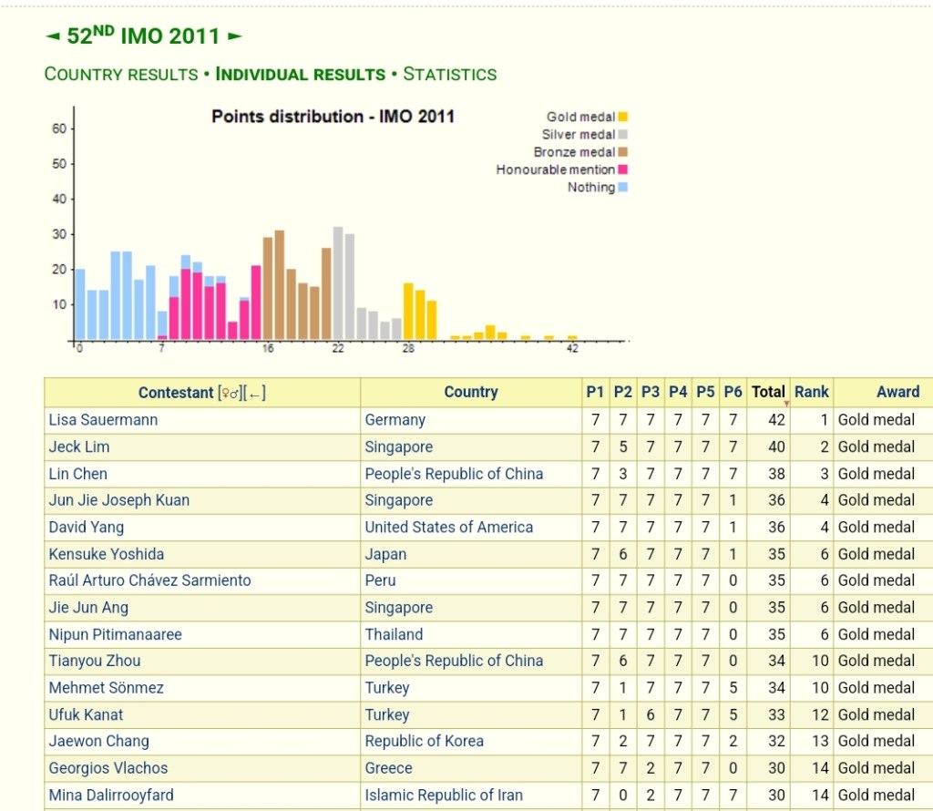 Trong điều kiện phòng thi thì thống kê chứng tỏ đây là bài hình học khó nhất trong lịch sử IMO! Ảnh sau tôi lấy từ [3], chỉ có thí sinh làm được bài toán này. Một bài toán rất rất khó!