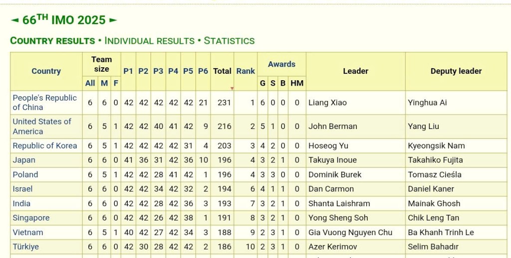 Olympic Toán học Quốc tế (IMO) 2025 là kỳ thi toán học danh giá nhất dành cho học sinh trung học, được tổ chức tại Sunshine Coast, Queensland, Australia từ ngày 10 đến 20 tháng 7 năm 2025. Đây là lần thứ 66 của cuộc thi, quy tụ các tài năng toán học trẻ từ hơn 100 quốc gia, tranh tài qua 6 bài toán khó trong các lĩnh vực như đại số, hình học, số học và tổ hợp. Việt Nam, với truyền thống thành tích ấn tượng tại IMO từ năm 1974, tiếp tục cử đội tuyển gồm 6 học sinh xuất sắc tham dự kỳ thi năm nay. Đội tuyển được lựa chọn qua Kỳ thi học sinh giỏi quốc gia và Kỳ thi chọn đội tuyển Olympic quốc tế, thể hiện sự chuẩn bị kỹ lưỡng của Bộ Giáo dục và Đào tạo.