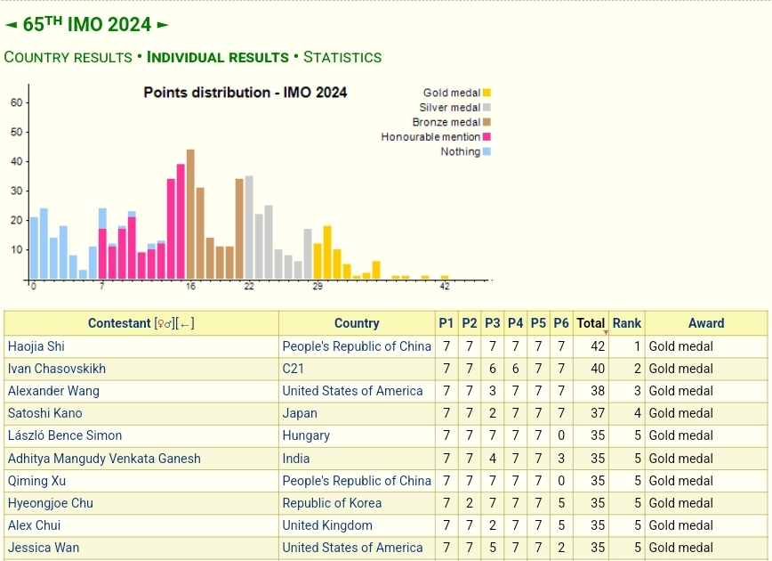 Top 10 thí sinh có điểm cao nhất. Haojia Shi lần thứ hai đạt 42/42 điểm. 🙂